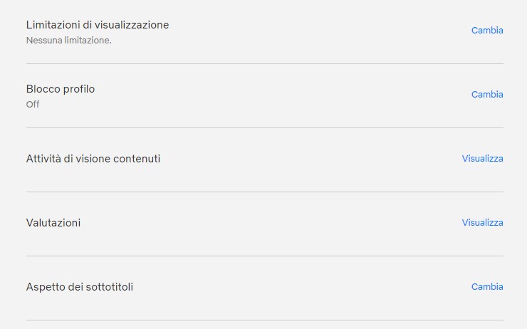 Raggiungere la sezione dedicata a “Profili e filtro famiglia”;